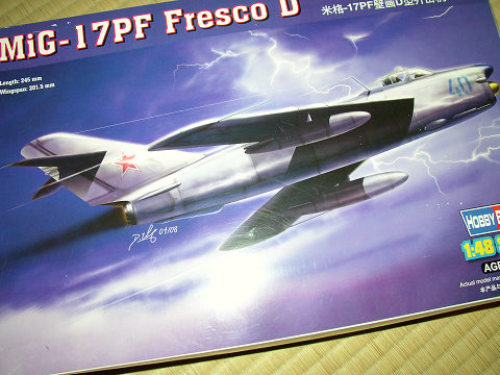 ホビーボス Mig-17PF Fresco D 1/48噂によると飛んでもなく合いの悪いキットらしいです。中国製ですから、最近のものはともかく昔は酷かったですわ。このキットもかなりの年季ものですから仕方がないですわね。このキットも中古で購入。 アイリスのコクピットが同梱されていて1500円ちょっと。うーん、買っちゃいました。