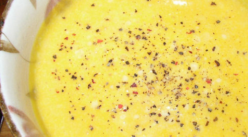南瓜のビシソワーズ。この季節の地物野菜は甘い。スープにすると美味しさが全部前面に出る。