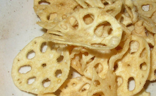 薄く切った蓮根をゆっくりと揚げただけ。ここまで来ると、おかずと言うよりおつまみかお菓子。食感が美味しいです。