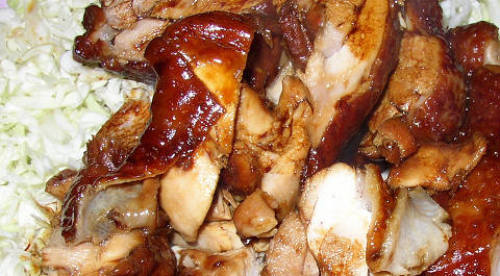 赤地鶏を煮る。基本は醤油、味醂、酒、大蒜。冷めても美味しい簡単料理。煮汁のタレは冷蔵庫で保存。また使えます。継ぎ足し継ぎ足し創業以来150年。嘘・・・orz