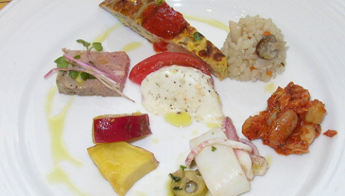 クアトロアミーチのランチに行ってきました。Cランチ1600円です。まずはアンティパスト。イタリア風オムレツ、茸のリゾット、4種の豆の煮付け、烏賊のマリネ、金時芋のオレンジ煮鶏のパテ、トマトとモツァレラチーズです。 パンは二種類付いてきます。奥が蜂蜜のパン、手前がグラハムのパンです。 パスタランチ、メインのパスタは私が選んだのは三河ポークと茄子のトマトソース。後、三種類の選択がありました。アオリイカのパスタも気になったのですが、肉が食べたかったのですわ。肉が軟らかくて一杯入っています。(隣で食べていた私の弟は、茄子ばかりだとぼやいていました。(笑)) 量も多くて僕にも満足です。 最後にドルチェと飲み物。アイスコーヒーを頼みましたが画像がありません。マンゴーのジェラート、梨のタルト、白ワインのゼリー、チョコレートケーキです。1600円で十分な種類と量が出て来ます。コスパは良いです。宇治は三室戸の駅からすぐ。アクセスも良いです。駐車場も前にコインパーキング有り、食事の場合はタダになります。