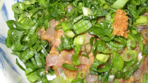 真鰺のなめろう。真アジの三枚おろしを買ってきて叩きました。コクがある信州味噌と本みりん。九条葱。以上です。 熱々のご飯に最適。美味すぎて肥えます。(肥えてますけど何か?)