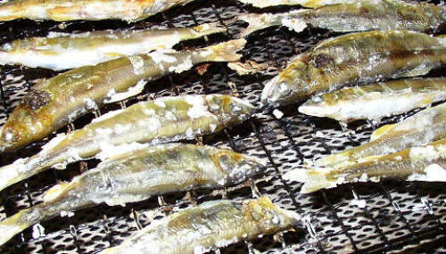 多分、関西でしか味わえない琵琶湖固有種の小鮎。10センチ程度の体長で成魚。この時期は子持ち小鮎というものが出回る。20匹程度で780円くらい。私は天麩羅よりもこれは塩焼きで。巧く焼かないと皮が破れてボロボロになっちゃうけれど、慣れてくるとこの通り。口に入れると鮎の薫りがあふれ出ます。さすが香魚。卵がホクホク。美味すぎます。昼からご飯を炊いて鮎の塩焼きです。