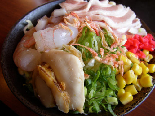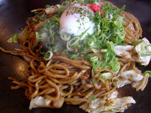 先日、もんじゃ焼きを注文した際に私が頼んだ焼きそば大盛り。温玉が載っています。麺は太麺でかなりコシがあります。しっかりした味で美味しい。粉ものでもお好み焼きか焼きそばですな。やはり関西人は。