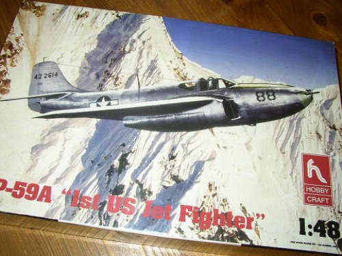 ホビークラフトカナダ 1/48 P-59A エアラコメット 第二次大戦末期、アメリカで開発されたジェット戦闘機です。実際30機作られたと言うことですから、日本の震電や橘花なんかより多いですが非常に珍しい機体です。ほとんど活躍することもなく、レシプロ戦闘機にも劣る性能。でも、この手の機体は大好きです。実機が残って、博物館に入っているというのは戦勝国だね。