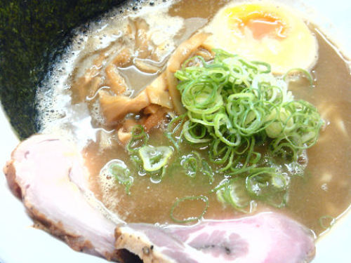 醤油味です。コッテリまろやか。美味いですな。今日はセットメニュー。唐揚げ1個とライスを付けています。 こんな感じ。携帯で撮った写真というのは、サイズがデカイ割りに汚い。レンズの善し悪しだな。いつもの300万画素のオリンパスの方がよっぽど綺麗。ライスは小をを頼んでいます。