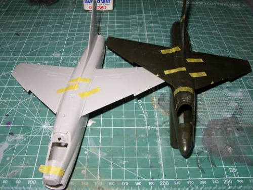 ハセガワの1/72コルセア2。少し、細部をいじってましたが、諦めました。スジ彫りをやり直す必要性を感じません。というか、フジミやエッシーがあるのに無意味。このままバシッと士の字にしました。諦めれば早いものです。パーティングラインは黒い瞬間接着剤で。こうしてみるとまだまだ団子鼻って感じだなぁ。 エッシーの方はこんな感じ。シートはまだ付いていません。コクピットを含めやっぱり後発のエッシーが良いです。フジミも探し出して比較します。