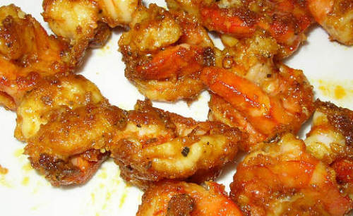 タンドリーチキンのシーズニングスパイスで海老を焼きました。簡単ですが美味しい一品です。インド料理にもこういうものがあったと思います。好みに合わせて、アボガドをペースト状にして檸檬を搾ったものを付け合わせて頂きます。