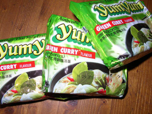 近所の業務スーパーで買ったインスタントラーメン。タイ製のものらしいです。味はグリーカレー味(笑)うーん、どんな味なんでしょう。しかし、グリーンカレーのペーストはタイ製がとても美味しいので期待できそうです。ネットで検索をかけると良い評価が出て来ますね。【タイ産 インスタント麺】YUMYUM ヤムヤム ポークラーメン タイラーメン 絶対に安い!!今やタイの国民食となったラーメントムヤムクン味インスタントラーメン(yumyum60g)タイカレーの代表グリーンカレーに麺を入れた美味しいラーメン。yumyum ヤムヤム トムヤムクンラーメン【ヤムヤムグリーンカレー】5個入