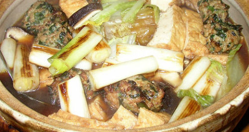 鍋。鍋にしました。餃子の中身が残っていたので、つくねに仕上げて鍋。葱は焼きました。寒い日は鍋に限りますなぁ。