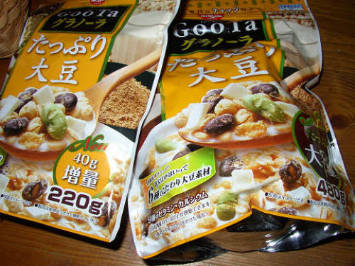 最近の朝食。ミューズリーです。一番お気に入りの「たっぷり大豆」とにかく豆が多いのがお気に入り。豆好きにはたまらないです。学生時代、登山の行動食と言えば大豆と片口鰯(ダシに使うあれです)とても重宝していました。うーん、朝から美味いよ。【全品エントリー最大10倍】GooTa グラノーラ たっぷり大豆 220g 【全品エントリー最大10倍】Gootaグラノーラ たっぷり大豆 480g最近、近所で見かけなくなりましたが、あれば絶対に480グラムの方を買います。それくらい好きです。(笑)