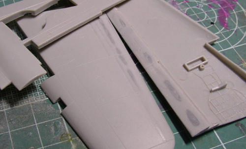 最近、解ってきたのだが、どうも私は一気に完成品に向かって突進するのではなく、チマチマ模型をいじっているのが好きみたいである。今頃なんなのであるが(笑)★☆ これはドラゴンのドルニエ335Bの主翼部分。このキット出来が酷すぎて笑ってしまう。いくら初期の製品だからと言ってヒケが酷すぎる。特にその場所の裏に肉厚の部分があるわけでなく、主翼エルロンの部分なのであるから。このキットはインストなしの中古キットであるから、前の持ち主はこれを見て製作意欲減退したのかもね。ただ、私的にはこの手のヒケの回復作業をやっているのは意外に好き。今回は溶きパテ使わずにサフの濃い部分を掬って筆塗りしてみた。一度では深い穴を埋められないが、パテより手軽で作業性が良い。(その分乾燥後退ける)これは友人が模型製作でやっていた手法。この方法もなかなか面白い。