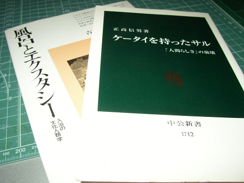 2011年に買った本。「ケータイを持ったサル」は買ってすぐ二時間で読んだのだが、もう一冊の「風呂とエクスタシー」は読もうと思って、そのまま本棚に寝ていた。(実質は工房の模型に埋もれていた)年末に模型を整理して出て来たので、鼠に引かれないうちに読んじゃいました。この本は面白いです。世界の風呂の分類とその起源。熱気浴、蒸気浴、熱湯浴の発生がよく解りました。日本人に生まれて良かった。熱湯浴大好き。 我が家は家を建て直す時に気合いを入れたのが4点。「工房」(特別に設計しました)「台所」(業務用仕様です。ただし配管を含め、建て替え時に契約を変えると何かとお得)「風呂」(普通の家の1.5倍はあります)「書庫兼書斎」(本で満たしても床は抜けません)生活の拠点だと思っています。趣味と食い物と恍惚。これしかないよね(笑) 後はごく普通かそれ以下(笑) うん、これに気をよくして平凡社選書の「歴史の中の米と肉」を買っちゃいました。ついでにジェームズ・ロリンズの「マギの聖骨」上下(ハードカバー)もね。全部で送料入れて1480円。リーズナブルです。