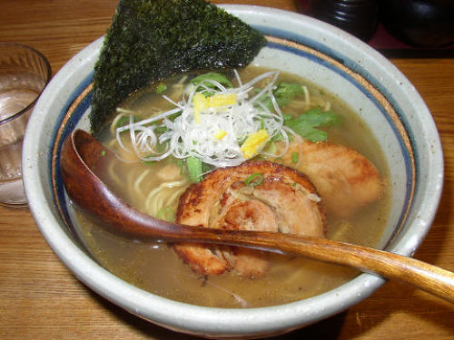 ふじ門製麺 奈良やすらぎの道沿いに新しくできました。15分前に着きましたが準備中ながら店の中で待たせていただきました。とても気持ちのいい店です。 ラーメンの種類は魚だしと豚だしの二種。どちらも680円です。 こちらは魚だしラーメン。あっさりとしてコクのあるスープです。 こちらは豚だしラーメン。スープを攪拌機で泡だたせています。トッピングは叉焼、白ネギ、レンコンの素揚げごぼうの素揚げ、青ネギ、水菜、味玉、糸唐辛子が載っています。美しい作品です。味玉は朝一番の客と言うことで一玉ずつ入っています。ナイスなサービスです。