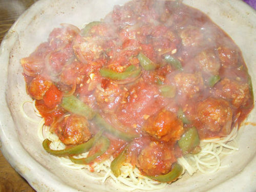 我が家定番のミートボールパスタ。ミートボールはオリーブオイルで一度揚げています。だから、パスタ自体が香ばしくなって美味しい。何度もこのブログでは出てきたけれど、「カリオストロの城」のパロ。 取り分けて、バルメジャンをかけて頂きます。映画の中であまりにうまそうに食べていたので、我流で作った次第です。(笑) ちなみにこの日のご飯は、サンマの刺身、沖縄産島モズクとパスタ。なんちゅうメニューなんじゃ。食べたいものを作りたいように作ったら、こんな風になりました的な(笑)