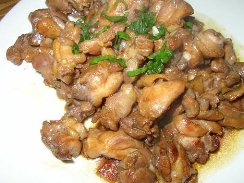 養鶏場から直接販売された親鶏の腿。醤油とニンニク、紹興酒に浸けておいたものをフライパンで焼きました。親鳥はかなり硬いのですが紹興酒に浸けると柔らかくなります。皮のコリコリ感はいい感じです。弁当のおかずにも良いですよ。