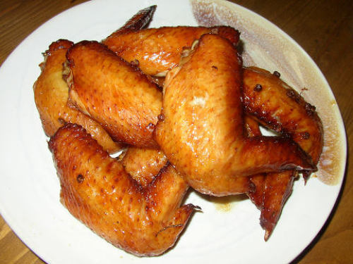 手羽先のオーブン焼き。醤油とガーリックの味付け。鶏肉専門店で買いましたので一本一本が大きいですよ。焼きたてはジューシーで美味い。