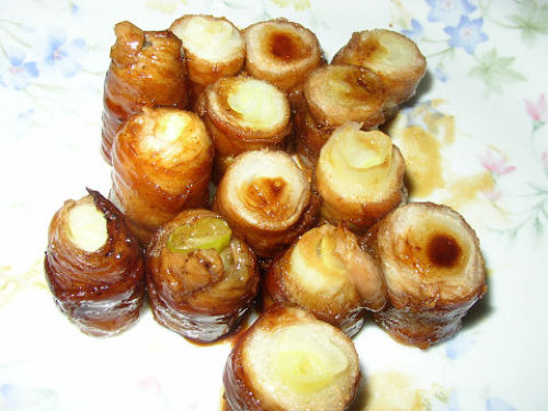 豚肉の葱まきを作りました。甘辛い味を付けてあるのでご飯のおかずになります。