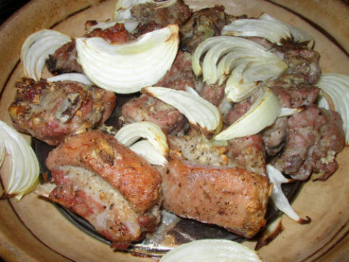 先日、松井山手のスーパーに行ったときに国産のスペアリブを買った。ラムも扱っているし食材としてはいい店だ。なかなか国産豚肉のスペアリブ扱っているスーパーがないので困ってしまう。スペアリブと言うのは売れないのだろうね。オーブンなんて言うのは苦手な人が多いから。実家ではオーブンは鍋入れになっていた。(笑)ダメじゃん。オーブン料理は簡単だから我が家ではしょっちゅう使っている。今回も耐熱容器に入れて脂を落とすために蒸し器の中敷きを入れている。スパイスをして焼くだけ。 皿に取り分けて、私は和芥子と醤油で・・・何もしていないのに玉ねぎが美味すぎ。