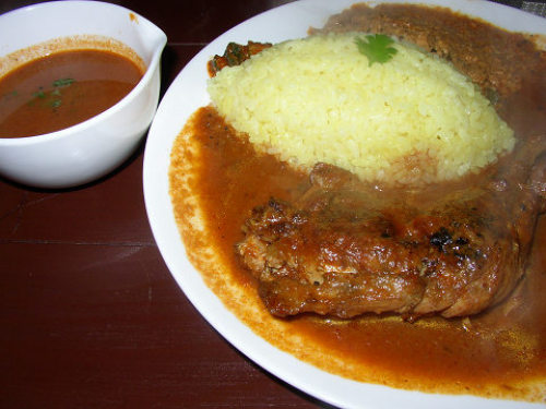 今回もアンドーラマトンカレー 。タリカロのスペシャルメニューです。ここにチキンカレーの追加を注文するのは違反?マトンもチキンも楽しめます。当然、チキンのレッグはないけれど、辛口のソースだけでウマウマなんだよね。今回もごちそうさまでした。