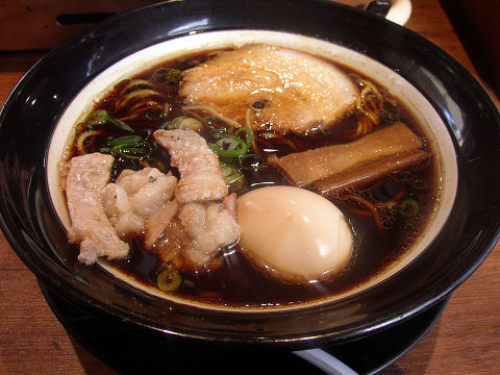 大阪ブラック ホルモントッピング 煮卵入り細麺 紅醤油 ホルモントッピング 煮卵入り細麺。金久右衛門