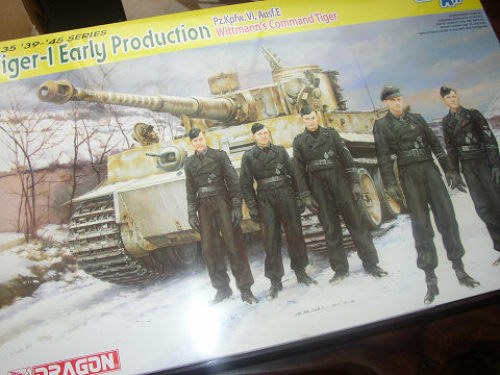 先日、ネットサーフィンしていると、ジョーシンに53個のタイガー1 初期生産型 ミハエル・ヴットマン搭乗車が出ていた。木曜日の夜のことである。アマゾンでも数個入手したところがあったらしく 定価で販売している店もありましたね。ジョーシンは良心的で割引販売をやっていて6500円程度で出ていました。思わず購入。一人三個という限定つきでしたが、操作がわからず(個数が一個から動かないの)一個だけ購入しました。ヴィッマンの有名な記念撮影をモデルにしたフィギアも初回は付いているし、これを逃してはと発売前から思っていたのです。 雑誌などでは12月31日発売となっていたものもあったので、20日すぎに模型屋に注文を入れたら、問屋の方では完売とのこと。凄かったので出遅れたとあきらめていたのですわ。ところが先週の木曜日、ジョーシンのネットショッピングで見つけて狂喜。購入にこぎつけました。翌日、昼前もう一度サイトをチェックしてみると完売。凄いなぁ。滑り込みセーフだわ。しかも、ジョーシンポイントがしこたま貯まっていたので、メチャ安く購入した。わーい。それにしても箱絵が良いわ。最高。