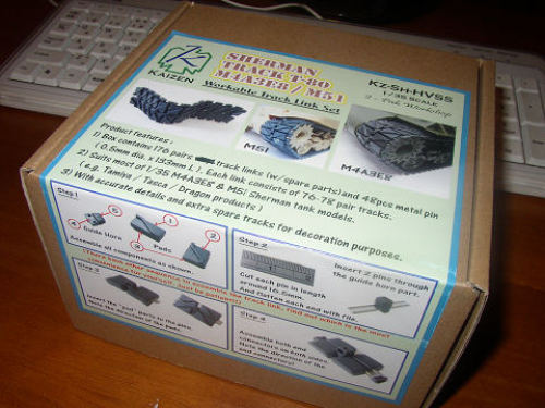 今は名前が変わって「アスカ」となりましたが、前身の「タスカ」の履帯とHVSSのサスペンションのキットです。タスカでは履帯はばら売りしていませんので、この形での入手となります。現在、櫁柑山のあるのは画像のT80型とT84型のセットです。履帯だけなら現在ならタミヤの「M51」でもドラゴンの「M51 ISHERMAN」にも入っていますね。こいつを再版されたタミヤのイジーエイトに履かせると「フューリー」のイージーエイトになりますね(詳しくは少し違うのね映画のものはM4A2E8だったから)。 これですね。このキットはタスカ時代のものと同じくT66型を履いています。自衛隊のイージーエイトもT80型でいいみたいです。現在、日本には当時のものが二台残っているそうですが、一台がT80型、もう一台がT84型を履いています。陸上自衛隊武器学校にあるものがT80型ですね。 陸上自衛隊富士学校にあるのがT84型。 こちらですね。ちょっと組むのが楽しみです。