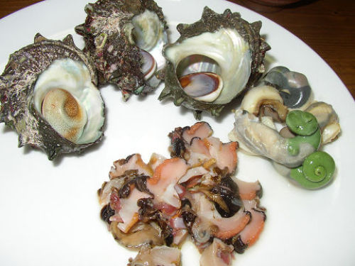 栄螺の刺身を作りました。一見難しそうですが、慣れればそんなでもありません。牡蠣剥きのナイフで、一気に隙間を攻めてとどめを刺します。そうすると簡単に貝は開くのです。全部一気に出そうと、無理をせずに身と内臓をこの時点で離します。(どうせ食べるときは別々ですから) あとは指を差し込んで、貝柱を剥がす(貝柱は指を入れると場所が判ります)と内臓部分もみんな綺麗に出てきます。内臓は軽く茹でて冷水で締めます。身は薄くスライスして出来上がり。家でも簡単に栄螺のお造りの出来上がりです。今回は1個150円なので安く楽しめました。