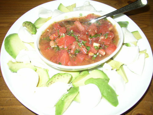 アボガドのサラダを作りました。ソースはトマトをベースにしたもの。ガーリックが効いて美味しいです。最近、アボガドが美味しいですわ。