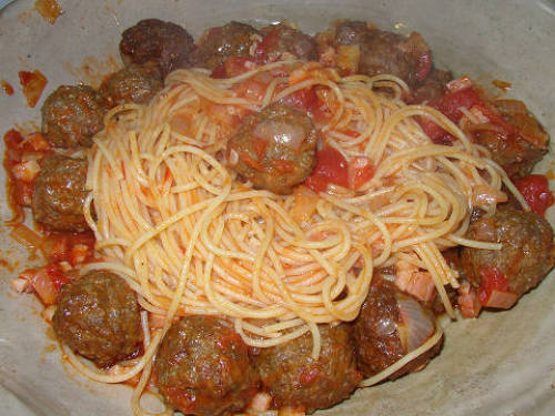 ミートボール作る。大量に作りあげてあとは冷凍。ミートボールは素揚げした状態で保存します。使い勝手が良いです。これは甘酢の餡をかけたものです。