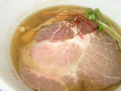 ぎん琉、初夏限定 「海の潮」あさり・海老・さば・ウルイワシ等々の出汁で採った塩らーめん。あっさりとして美味しいです。 レア叉焼でこんな感じです。
