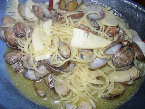 オイルパスタを作りました。浅蜊と筍です。美味いですなぁ。