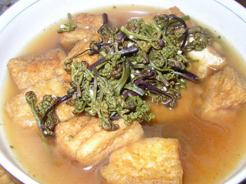 蕨を頂きました。カツオの出汁を効かせて優しい味付けをしています。厚揚げも好きなんだな~。