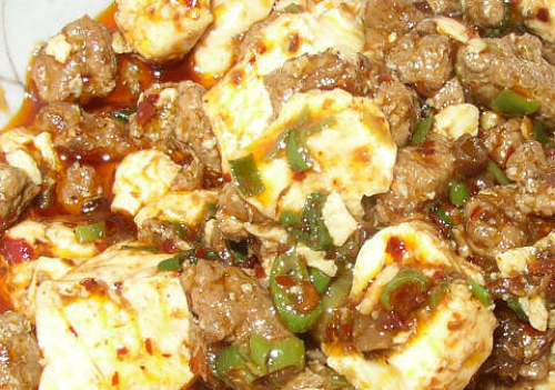 粗びきミンチを使った麻婆豆腐。辛みを足して頂きました。