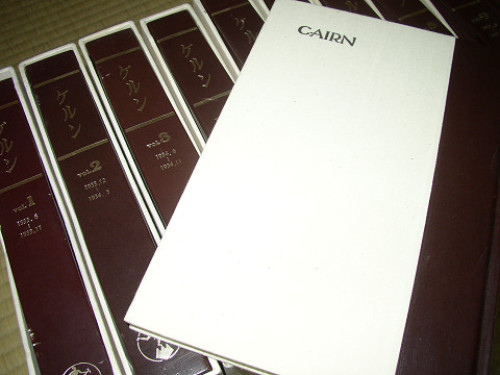 復刻版 ケルン 全10冊 解題1冊1933年に刊行された山岳雑誌「ケルン」1938年に終刊するまで60冊が刊行された。それを全冊復刻したもの。岩と雪の時代と言われ、大学登山の華やかかりし昭和初期の息吹が感じられる。1938年には戦争が激しくなり、国家総動員法が発令されるなど、一気に登山ブームは下火になった。そのあおりを受けてか廃刊。登山の歴史の証人的雑誌だ。布装・背は革装。非常に高価なつくりだが、最近では誰も見向きもしないのか、一冊200円程度で入手できる。海外遠征とか華やかな記事が躍るが、時代は戦争に突入するというのは、なんともやるせない。