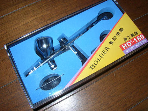 ハンドピースは複数持っていますが気になっていたので一つ買ってみました。台湾製のものです。デザインが良くて、手元のエア調整バルブが魅力です。これで2600円程度ですから、メインに使うつもりがないのでまぁ良いかな。 口コミを見ていると、当たり外れがあるみたいですが、ニードルがきつい以外はいい感じです。それにしてもスポイトはいらないかな。