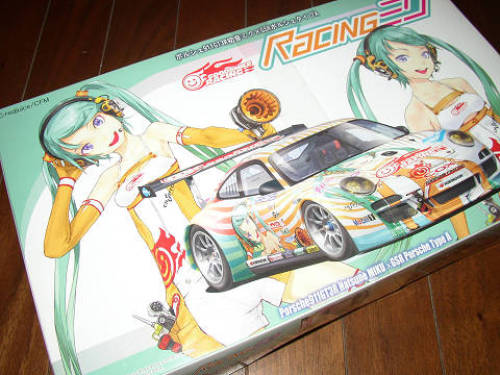 確か一番古いポルシェ911タイプのレーシングミク。グラデーション塗装が肝のキットです。少し、ハードルが高いとの評価も。こちらがAタイプ。 こちらがBタイプ。両方ともゼッケンナンバーが入っていない。版権とかなんかの大人の事情なんでしょうね。2011年発売のものですね。アイドルマスターの機体を集めていた時も思いましたが、版権物は一つ一つが高いね。デカールの貼りつけも失敗できないし、そろそろ作らないと、デカールがやられてからだと意味がないしなぁ。