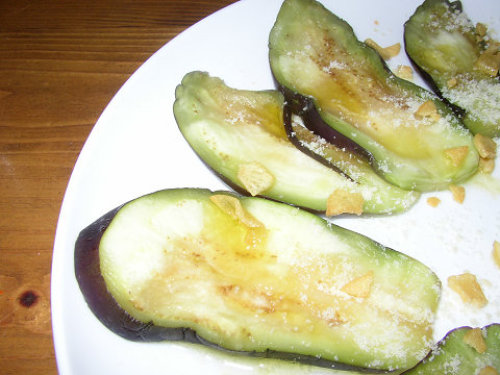 水ナスのカルパッチョ風 水ナスを漬けてオリーブオイルを振りガーリックチップを散らしました。 水ナスは薄い漬物にしたのでこれだけでも塩気があります。 和洋折衷ですが意外に美味い。 創作料理としては当たりの部類に入ります。