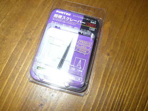 超硬スクレーパーレジンやスチロール、アクリルに使えます。細かなライン消しには良さそうです。 先端は三角形になっています。ピンバイスに挟んで使います。ピンバイスはたくさん家にあるから、専用を作っても良いな。