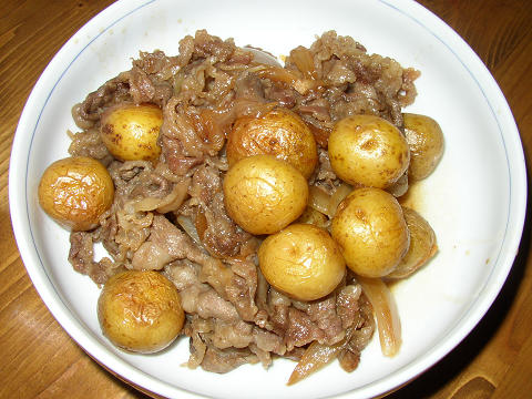 我が家の肉じゃが。小振りのジャガイモをそのまま使います。