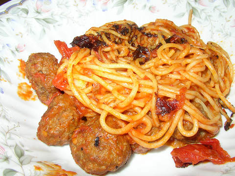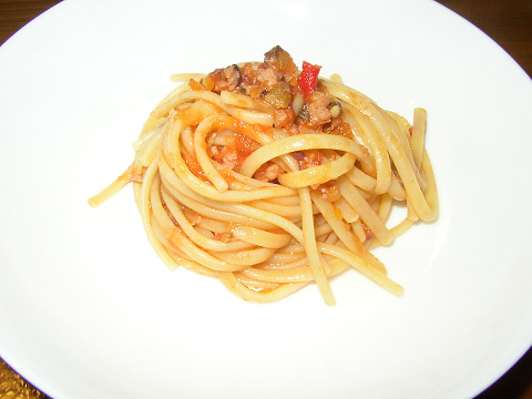蛸のトマトソース・リングイネです。トマトソースは以前、生蛸を一匹買った時に大目に作ったのを冷蔵庫で保管していたものです。こんなものを作っておくと、料理の幅が広がります。リングイネは各種買いだめのパスタから選択。今日はリングイネの気分だからです。トングを使ってサッと盛り付け、飾り付けにソースを少しのせました。ローストビーフは形の良い肉が手に入ったので製作。買うよりずっとお得です。以前に作ったローストビーフがこちら、時間を短くしたらかなりレアな感じに仕上がりました。おおお、ほとんど生状態ですね。これはこれで美味いですが、もう少し欲しい感じ。今日のローストビーフは2分大目に焼いたので逆にミディアム状態に。結構、微妙な料理なのですが面白いです。付け合わせはツナとアスパラガス、パプリカのサラダです。あと、ニシカワ食品(兵庫県加古川市)のバッファローがあったのでそれも付けました。料理は美味しい上に面白い。★☆高校時代、家庭科室の包丁は安物の上に手入れがなっていなくて、だめぷーなので、実習時間にマイ包丁(ヘンケルの牛刀とスウェーデン鋼挟み込みの包丁)を持って行ったら教員にブチギレられました。包丁は料理の命なんだから手入れをしっかりしてよ。(今考えると仕方ないか)