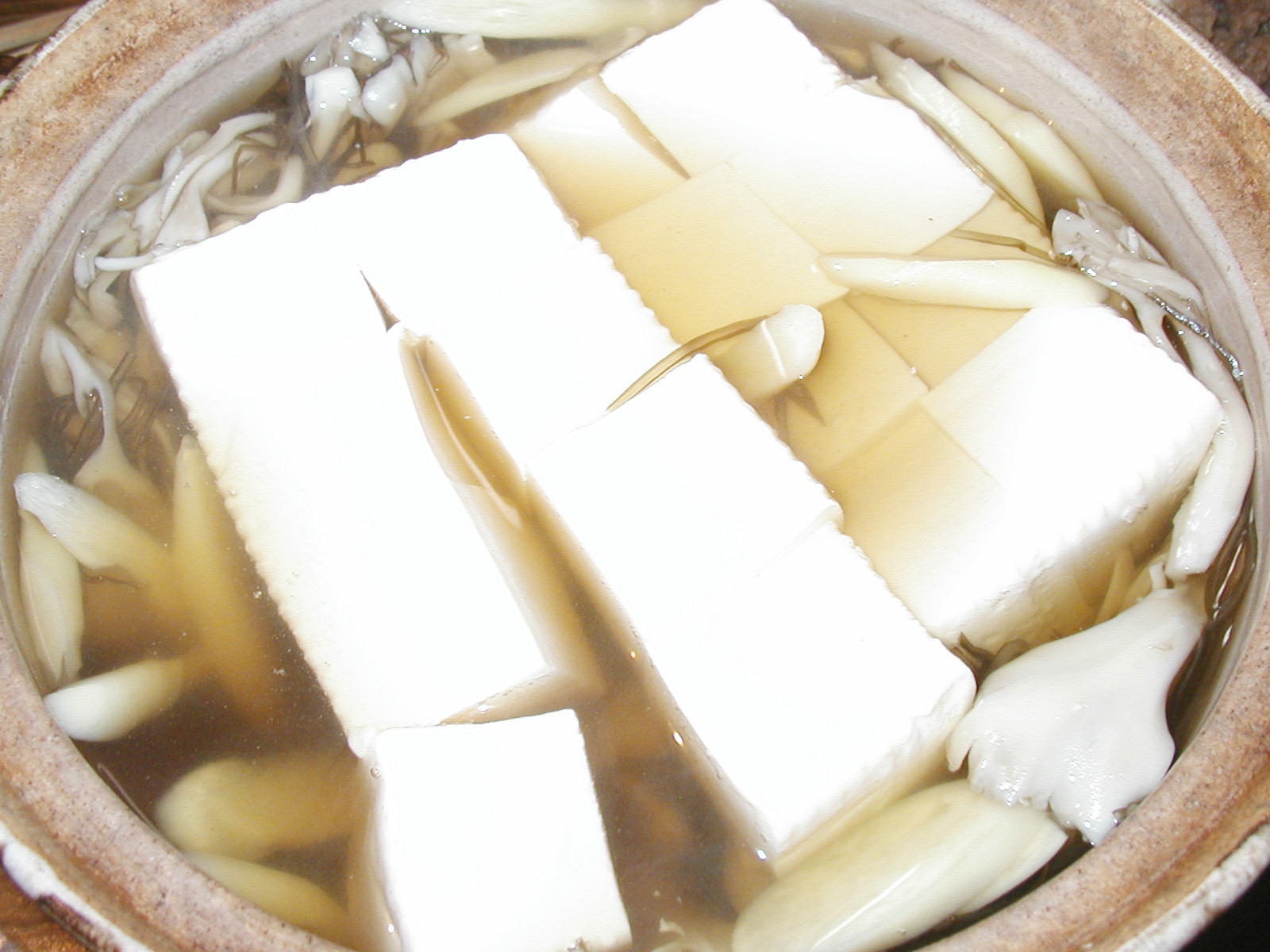 湯豆腐。混布だしだけでなく、飛魚だしを入れました。マイタケを入れて。豆腐は奈良県の谷川豆腐。