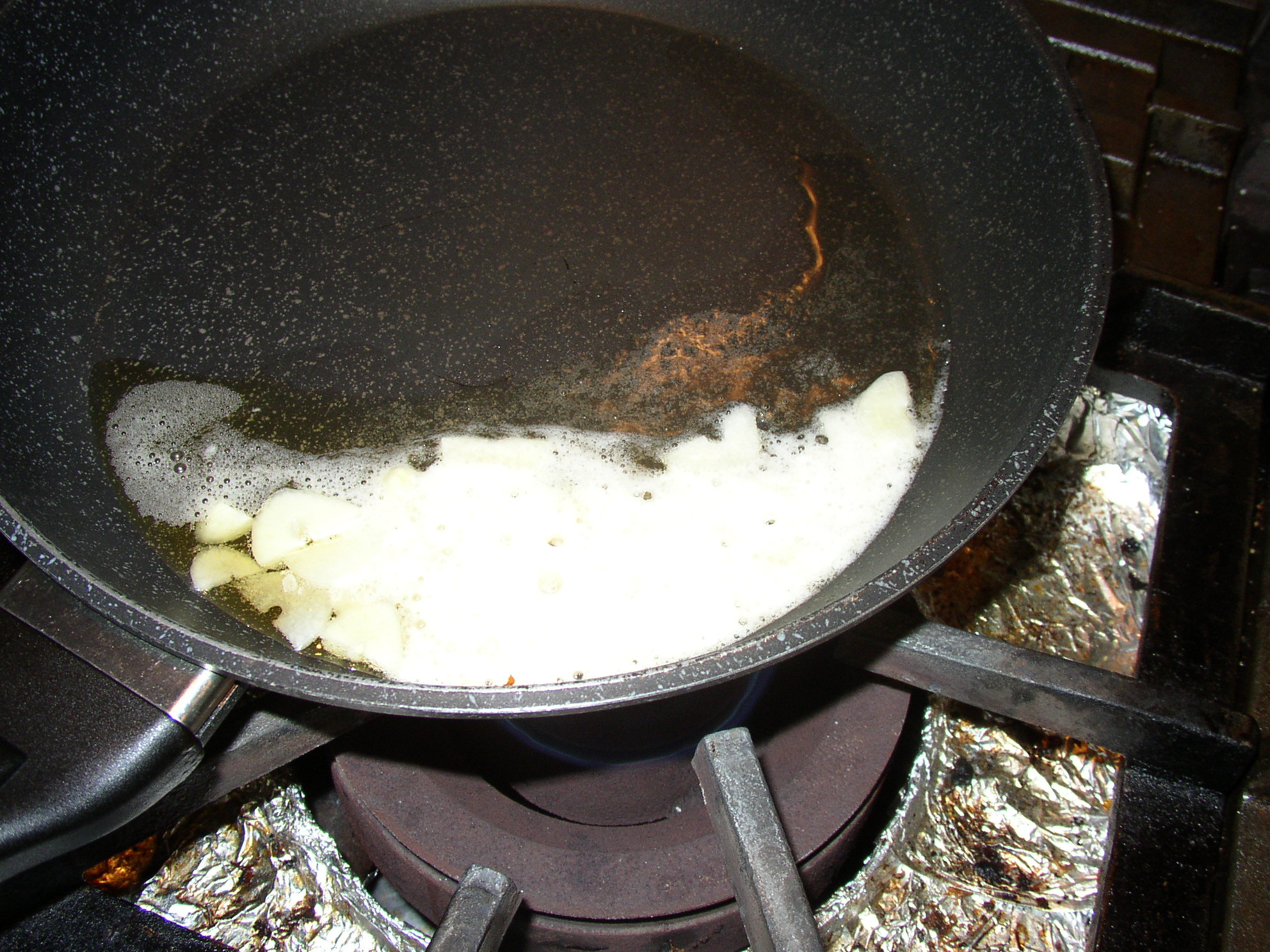 ローストガーリック製作。ゆっくり焦がさないように。ココナッツオイルを使っています。このガーリックオイルで蓮根を炒めて、ガーリックをトッピング。ガーリック大好き。