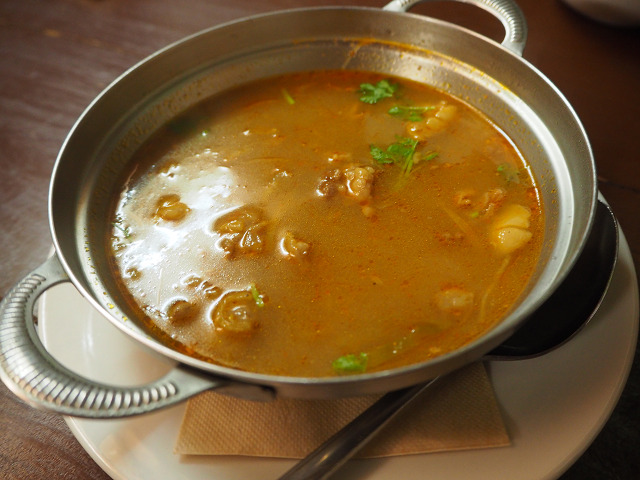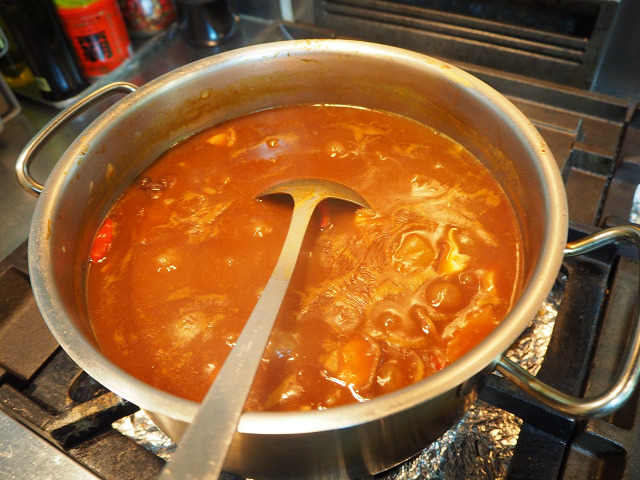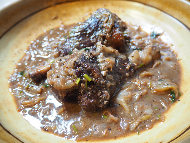 見た目は凄いけれど、これはかなり強烈なシチューなのだ。ラムシャンク、つまり子羊の骨付き足の肉をシチューにしたと言うもの。ラムシャンク自体が思ったより小さかったので二本一気にシチューに。しっかり煮込んであるので。肉がホロホロと骨から外れます。少しトングでほぐしたところ。肉が柔らかくて甘いです。皿に少し盛り付けました。いただきます。今日は疲れたので、栄養摂ります。