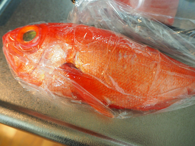 奈良のスーパーの土曜朝市で買ってきた金目鯛。かなり大振りの金目鯛です。今回は未処理のモノなので鱗と内臓を処理して冷蔵庫に入れました。焼き豆腐、牛蒡、焼き葱と一緒に煮つけてみました。目の部分が一番美味かったりして(笑)魚の煮付けは良いですね。