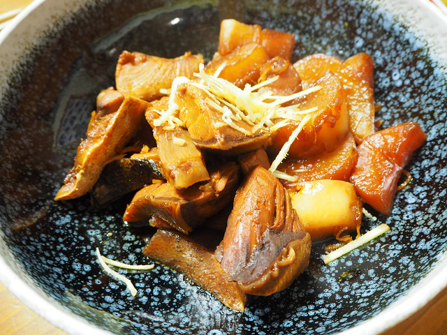鰤大根。見た目は悪いが味は良い。鰤大根を作ると、全体が真っ茶っ茶になって映えないなぁ(笑)でもこの時期は鰤大根です。