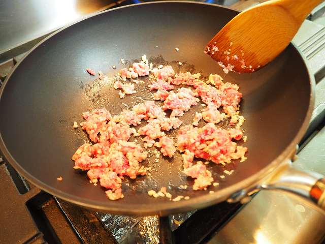 これはなんと焼きながら上から、キャセロールの鍋で抑えています。この焼き方は「ラ・ベットラ」の落合シェフの受け売り。上から抑えて焼く。肉の厚さはできるだけ揃える。するとカリッカリの皮になって、メチャメチャ美味しい。絶対にやってみるべきです。