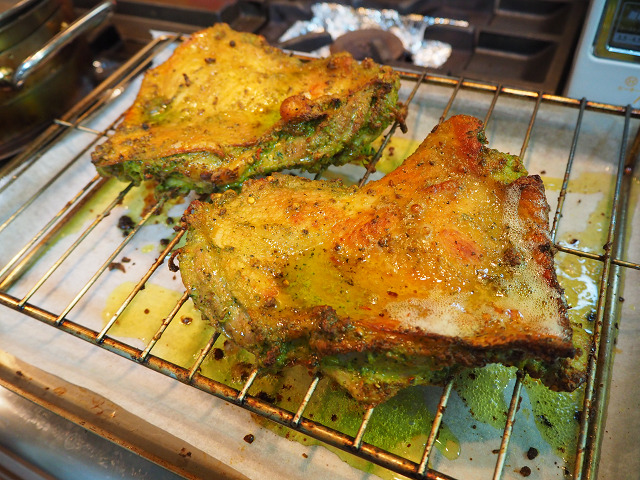 昨日からチキンを香辛料に漬け込んでおきました。何入れたか判らないくらい(笑)クミンなんかはシードでぶち込んでいる。かなりインドインドしているローストチキンが出来たぞ。冷えてもこれはいける。カレーの付け合わせに出すときっとタンドールチキンと間違ってくれそう。(笑)でも、息子には不評。チキンは普通にローストして醤油で食べるのがいいそうだ。(笑)
