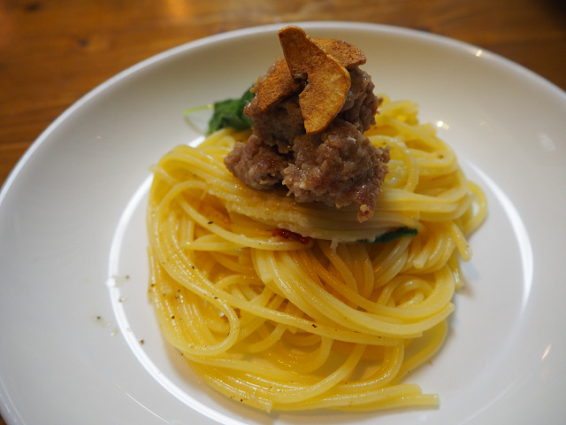 サルシッチャのペペロンチーノ。パメルメジャーノチーズとブラックペッパーをたっぷりかけて頂きました。ガーリックは少し焦げているけれど香ばしくて美味しい。オーブンでチキンを焼きました。チキンはヒネ鳥のモモ肉。塩麹に漬け込んであります。しかし十分に歯ごたえがあって美味しいですよ。
