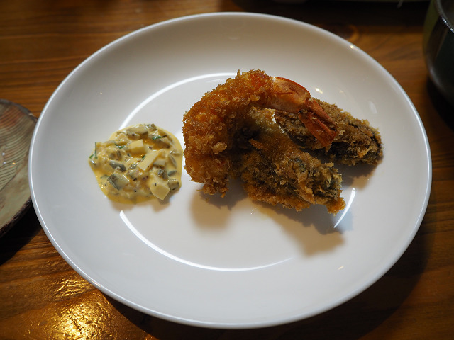 今日は牡蠣フライと海老フライが食べたかった。なので(この表現は好きではないが)牡蠣フライてんこ盛り、海老フライてんこ盛りを実践しました。この画像では取り皿に可愛く取った図。(笑)大皿には両方がてんこ盛りになっています。お腹いっぱい牡蠣フライ喰ったぞ。スープはペンネとアサリのトマトスープ。これはこれで美味い。ちょっと酸っぱいトマトも有ったけれどね。牡蠣を買った時に思わず買ってしまった馬面ハギの刺身。肝が付いているともっと嬉しいのだが。モチモチして美味しいよ。ゴチです。